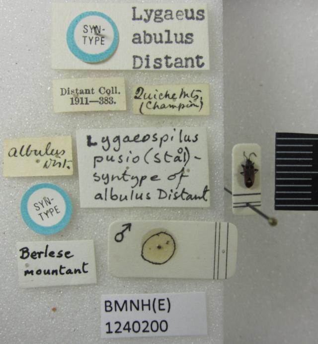 Lygaeus abulus. Syntype. (BMNH) - (CC BY-NC 4.0) Photo by Stuart Cole, reproduced with permission from the Natural History Museum, London, UK.
