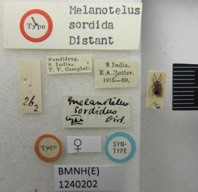 Melanotelus sordida Syntype. (BMNH) - (CC BY-NC 4.0) Photo by Stuart Cole, reproduced with permission from the Natural History Museum, London, UK.