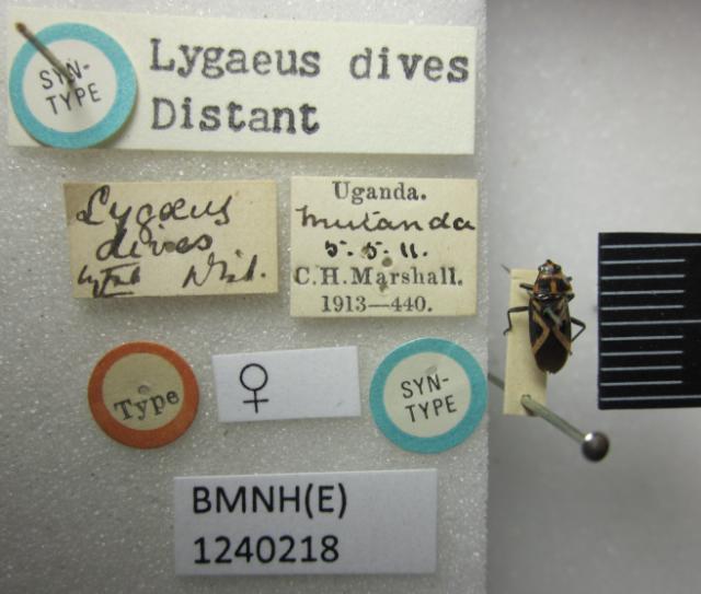 Lygaeus dives. Syntype. (BMNH) - (CC BY-NC 4.0) Photo by Stuart Cole, reproduced with permission from the Natural History Museum, London, UK.