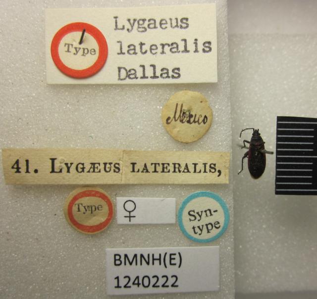 Lygaeus lateralis. Syntype. (BMNH) - (CC BY-NC 4.0) Photo by Stuart Cole, reproduced with permission from the Natural History Museum, London, UK.