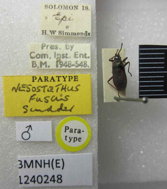 Nesostethus fuscus. Paratype. (BMNH) - (CC BY-NC 4.0) Photo by Stuart Cole, reproduced with permission from the Natural History Museum, London, UK.