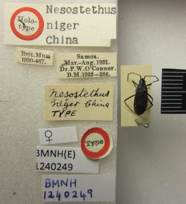 Nesostethus niger. Holotype. (BMNH) - (CC BY-NC 4.0) Photo by Stuart Cole, reproduced with permission from the Natural History Museum, London, UK.