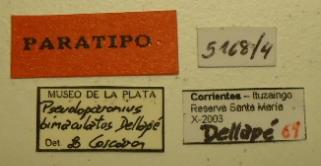 Psedoparomius bimaculatus. Paratype Labels. (MLP) - (CC BY-NC 4.0) - Photo by Eugenia Minghetti, reproduced with permission from the Museo de La Plata, La Plata, Argentina.