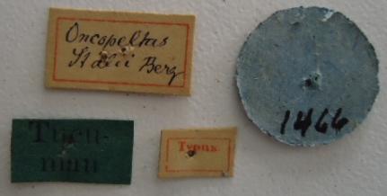 Oncopeltus stalii. Type Lables. (MLP) - (CC BY-NC 4.0) - Photo by Eugenia Minghetti, reproduced with permission from the Museo de La Plata, La Plata, Argentina.