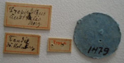 Tropistethus australis. Type Labels. (MLP) - (CC BY-NC 4.0) - Photo by Eugenia Minghetti, reproduced with permission from the Museo de La Plata, La Plata, Argentina.