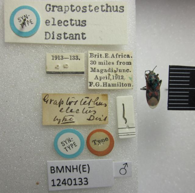 Graptostethus electus. Syntype. (BMNH) - (CC BY-NC 4.0) Photo by Stuart Cole, reproduced with permission from the Natural History Museum, London, UK.