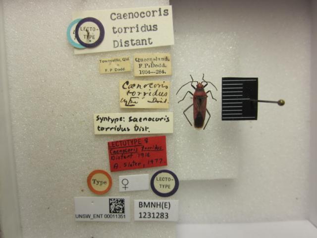 Caenocoris torridus. Lectotype. (BMNH) - (CC BY-NC 4.0) Photo by Stuart Cole, reproduced with permission from the Natural History Museum, London, UK.