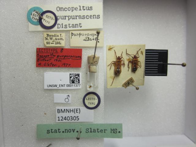 Oncopeltus purpurascens. Lectotype. (BMNH) - (CC BY-NC 4.0) Photo by Stuart Cole, reproduced with permission from the Natural History Museum, London, UK.