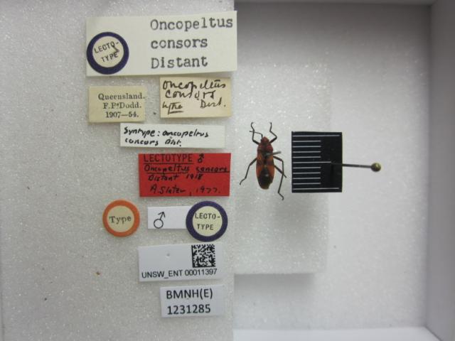 Oncopeltus consors. Lectotype. (BMNH) - (CC BY-NC 4.0) Photo by Stuart Cole, reproduced with permission from the Natural History Museum, London, UK.