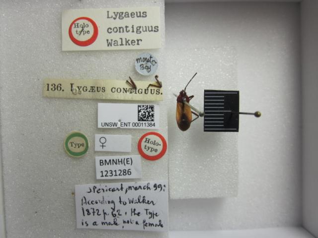 Lygaeus contiguus. Holotype. (BMNH) - (CC BY-NC 4.0) Photo by Stuart Cole, reproduced with permission from the Natural History Museum, London, UK.