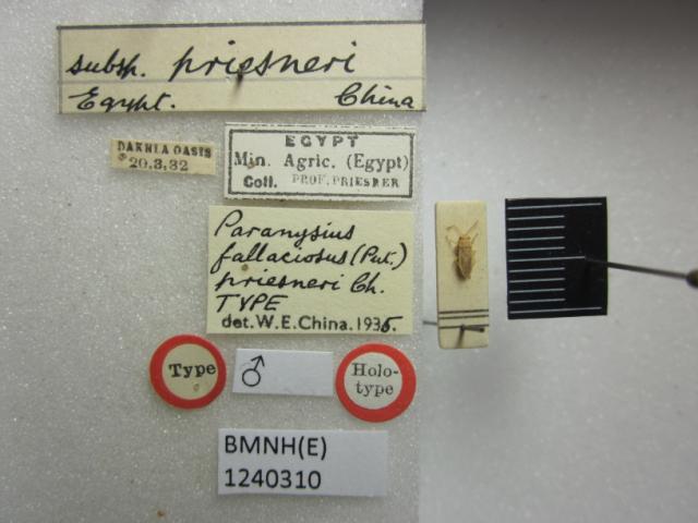 Paranysius fallaciosus priesneri. Holotype. (BMNH) - (CC BY-NC 4.0) Photo by Stuart Cole, reproduced with permission from the Natural History Museum, London, UK.