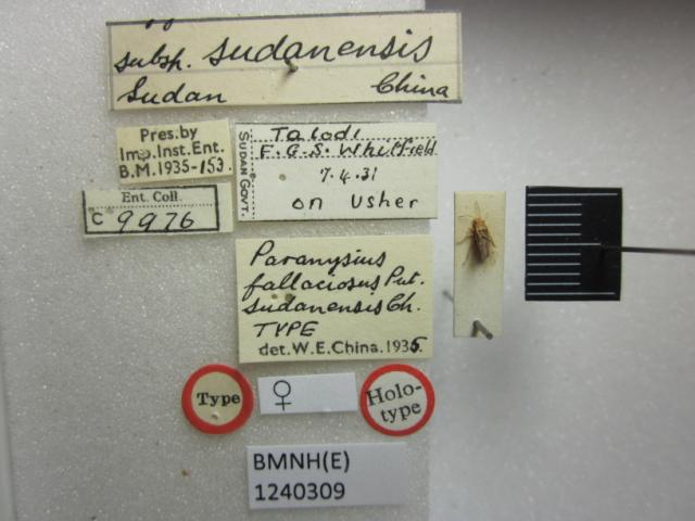 Paranysius fallaciosus sudanensis. Holotype. (BMNH) - (CC BY-NC 4.0) Photo by Stuart Cole, reproduced with permission from the Natural History Museum, London, UK.