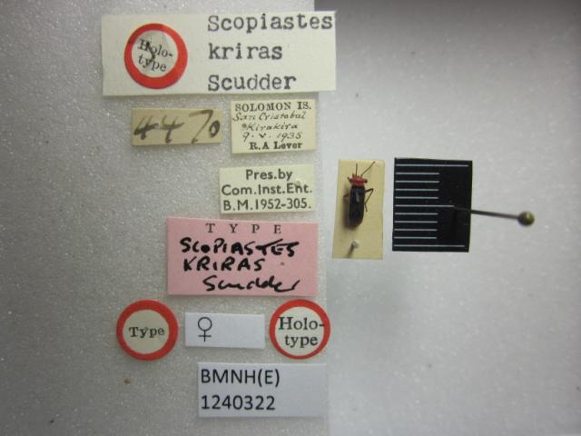 Scopiastes kriras. Holotype. (BMNH) - (CC BY-NC 4.0) Photo by Stuart Cole, reproduced with permission from the Natural History Museum, London, UK.