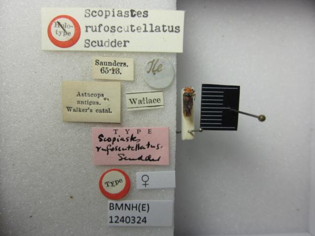Scopiastes rufoscutellatus. Holotype. (BMNH) - (CC BY-NC 4.0) Photo by Stuart Cole, reproduced with permission from the Natural History Museum, London, UK.