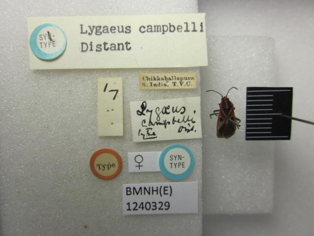 Lygaeus campbelli. Syntype. (BMNH) - (CC BY-NC 4.0) Photo by Stuart Cole, reproduced with permission from the Natural History Museum, London, UK.