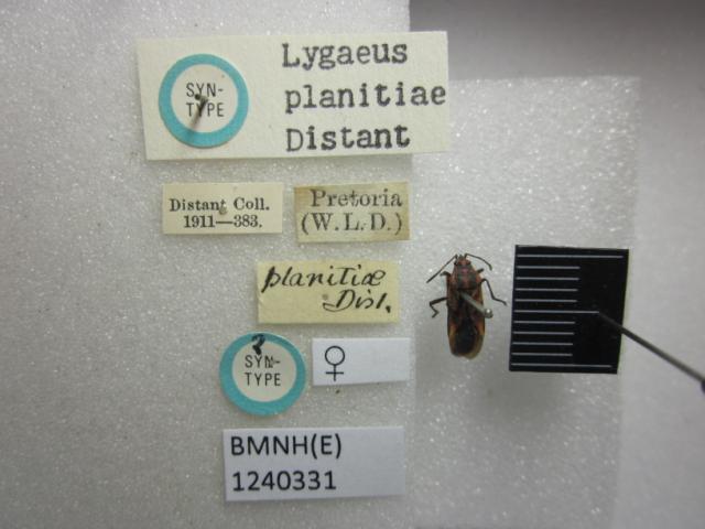 Lygaeus planitiae. Syntype. (BMNH) - (CC BY-NC 4.0) Photo by Stuart Cole, reproduced with permission from the Natural History Museum, London, UK.