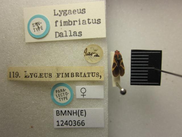 Lygaeus fimbriatus. Paralectotype. (BMNH) - (CC BY-NC 4.0) Photo by Stuart Cole, reproduced with permission from the Natural History Museum, London, UK.