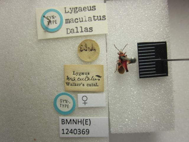 Lygaeus maculatus. Syntype. (BMNH) - (CC BY-NC 4.0) Photo by Stuart Cole, reproduced with permission from the Natural History Museum, London, UK.