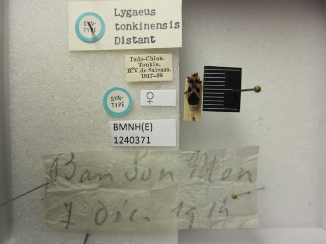 Lygaeus tonkinensis. Syntype. (BMNH) - (CC BY-NC 4.0) Photo by Stuart Cole, reproduced with permission from the Natural History Museum, London, UK.