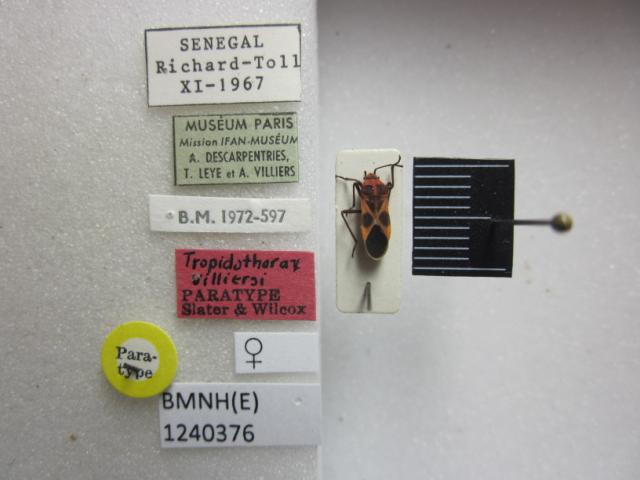 Tropidothorax villiersi. Paratype. (BMNH) - (CC BY-NC 4.0) Photo by Stuart Cole, reproduced with permission from the Natural History Museum, London, UK.