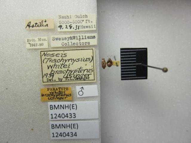 Neseis whitei brachypterus. Paratype. (BMNH) - (CC BY-NC 4.0) Photo by Stuart Cole, reproduced with permission from the Natural History Museum, London, UK.