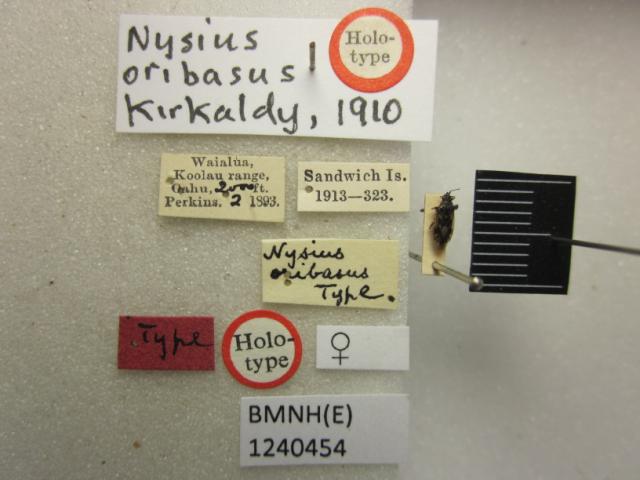 Nysius oribasus. Holotype. (BMNH) - (CC BY-NC 4.0) Photo by Stuart Cole, reproduced with permission from the Natural History Museum, London, UK.