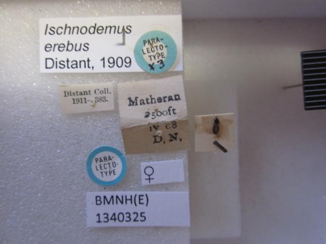 Ischnodemus erebus. Paralectotype. (BMNH) - (CC BY-NC 4.0) Photo by Stuart Cole, reproduced with permission from the Natural History Museum, London, UK.