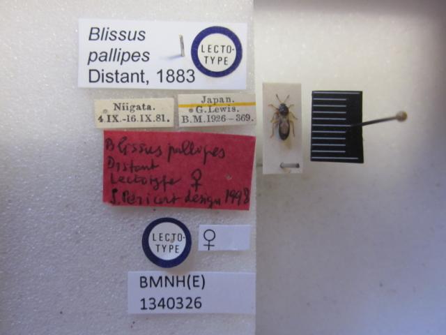 Blissus pallipes. Lectotype. (BMNH) - (CC BY-NC 4.0) Photo by Stuart Cole, reproduced with permission from the Natural History Museum, London, UK.