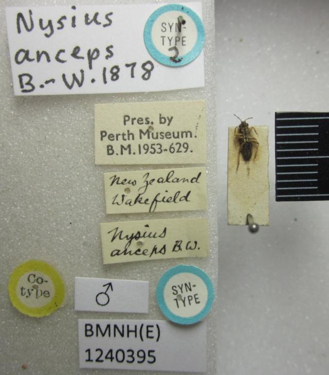 Nysius anceps. Syntype. (BMNH) - (CC BY-NC 4.0) Photo by Stuart Cole, reproduced with permission from the Natural History Museum, London, UK.