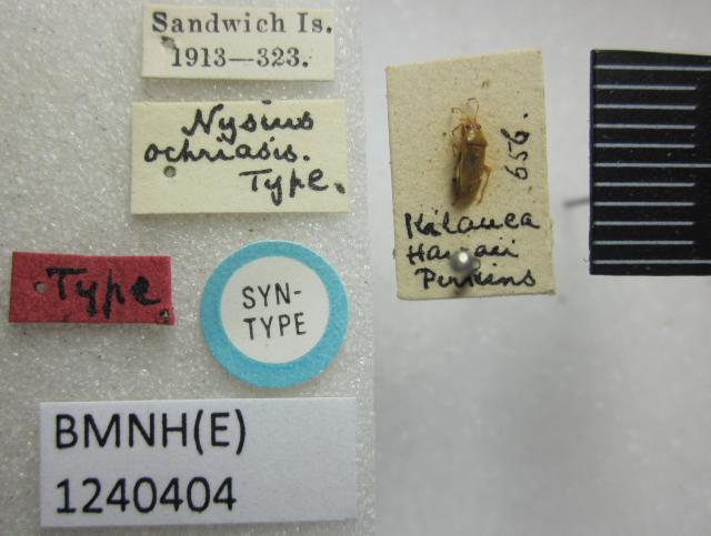 Nysius ochriasis. Syntype. (BMNH) - (CC BY-NC 4.0) Photo by Stuart Cole, reproduced with permission from the Natural History Museum, London, UK.