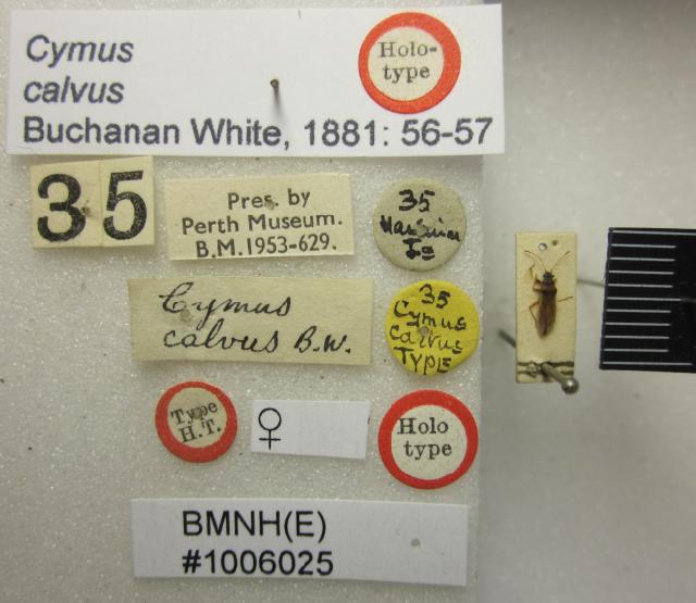 Cymus calvus. Holotype. (BMNH) - (CC BY-NC 4.0) Photo by Stuart Cole, reproduced with permission from the Natural History Museum, London, UK.