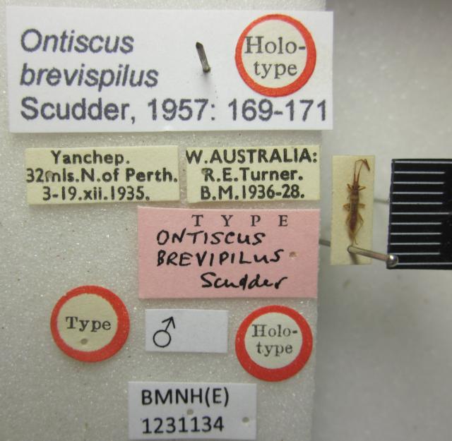 Ontiscus brevispilus. Holotype. (BMNH) - (CC BY-NC 4.0) Photo by Stuart Cole, reproduced with permission from the Natural History Museum, London, UK.