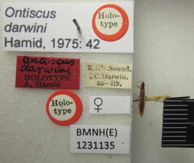 Ontiscus darwini. Holotype. (BMNH) - (CC BY-NC 4.0) Photo by Stuart Cole, reproduced with permission from the Natural History Museum, London, UK.