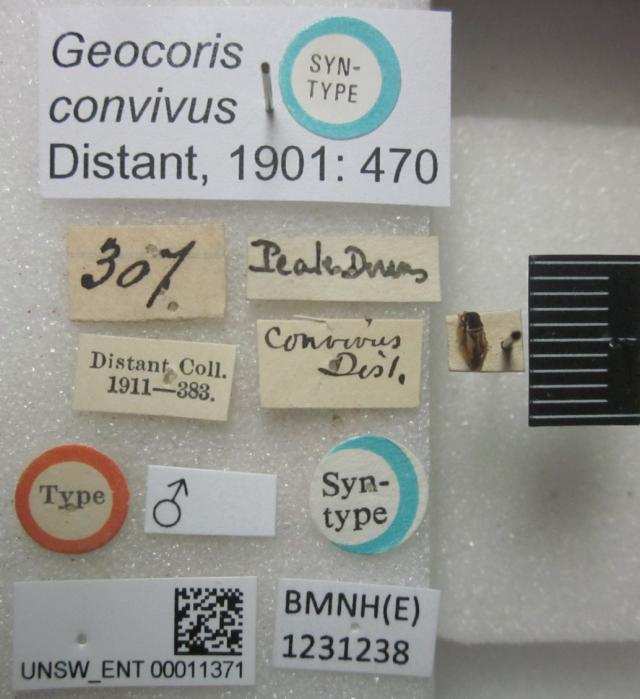Geocoris convivus. Syntype. (BMNH) - (CC BY-NC 4.0) Photo by Stuart Cole, reproduced with permission from the Natural History Museum, London, UK.