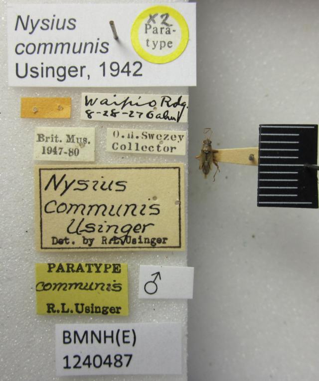 Nysius communis. Paratype. (BMNH) - (CC BY-NC 4.0) Photo by Stuart Cole, reproduced with permission from the Natural History Museum, London, UK.