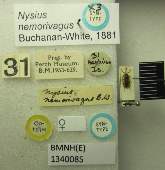Nysius nemorivagus. Syntype. (BMNH) - (CC BY-NC 4.0) Photo by Stuart Cole, reproduced with permission from the Natural History Museum, London, UK.
