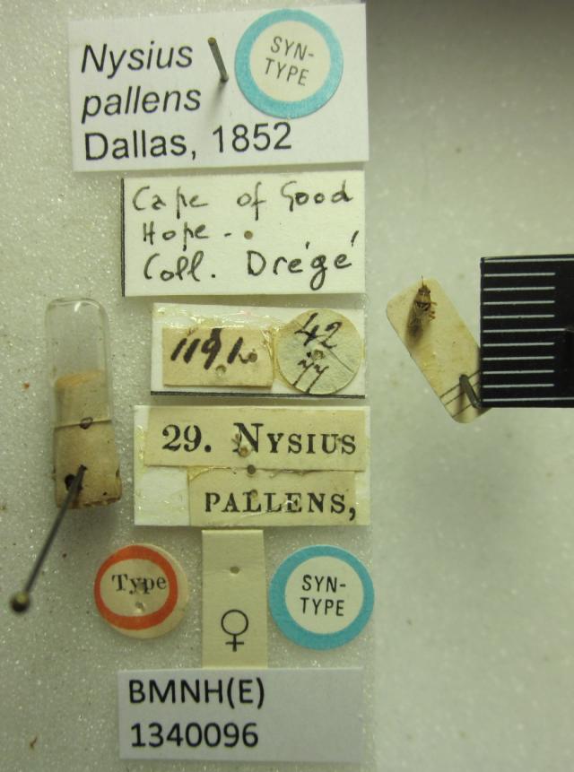 Nysius pallens. Syntype. (BMNH) - (CC BY-NC 4.0) Photo by Stuart Cole, reproduced with permission from the Natural History Museum, London, UK.