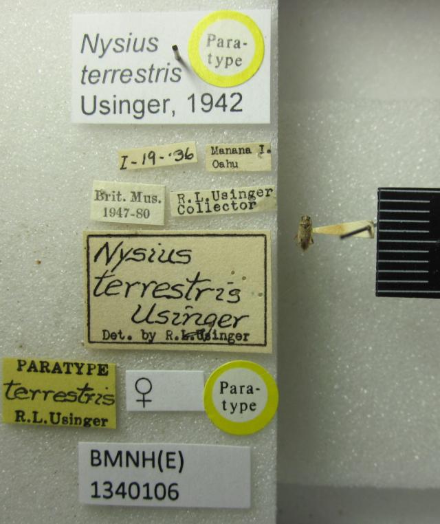 Nysius terrestris. Paratype. (BMNH) - (CC BY-NC 4.0) Photo by Stuart Cole, reproduced with permission from the Natural History Museum, London, UK.