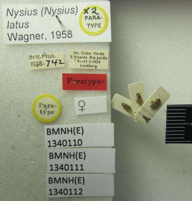 Nysius latus. Paratype.(BMNH) - (CC BY-NC 4.0) Photo by Stuart Cole, reproduced with permission from the Natural History Museum, London, UK.
