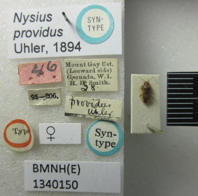 Nysius providus. Syntype. (BMNH) - (CC BY-NC 4.0) Photo by Stuart Cole, reproduced with permission from the Natural History Museum, London, UK.
