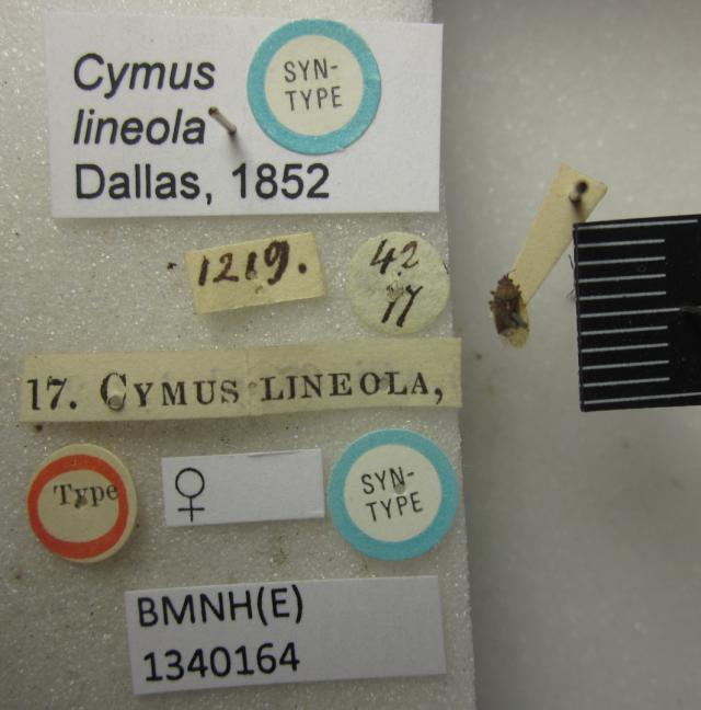 Cymus lineola. Syntype. (BMNH) - (CC BY-NC 4.0) Photo by Stuart Cole, reproduced with permission from the Natural History Museum, London, UK.