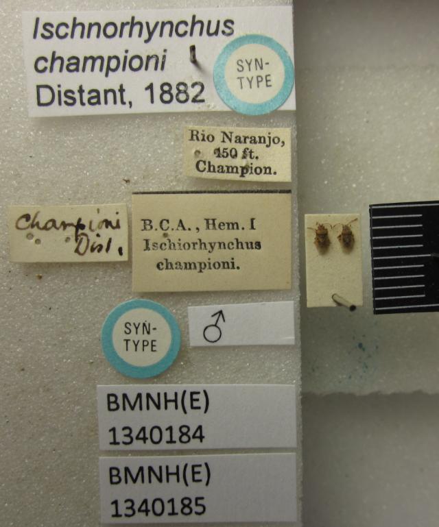 Ischnorhynchus championi. Syntype. (BMNH) - (CC BY-NC 4.0) Photo by Stuart Cole, reproduced with permission from the Natural History Museum, London, UK.