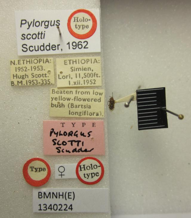 Pylorgus scotti. Holotype. (BMNH) - (CC BY-NC 4.0) Photo by Stuart Cole, reproduced with permission from the Natural History Museum, London, UK.