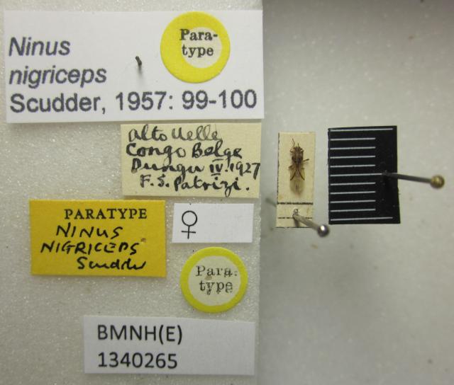 Ninus nigriceps. Paratype. (BMNH) - (CC BY-NC 4.0) Photo by Stuart Cole, reproduced with permission from the Natural History Museum, London, UK.