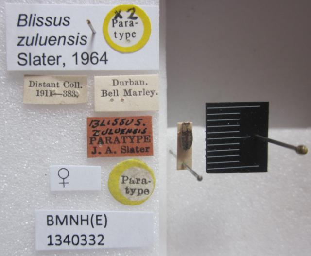 Blissus zuluensis. Paratype. (BMNH) - (CC BY-NC 4.0) Photo by Stuart Cole, reproduced with permission from the Natural History Museum, London, UK.