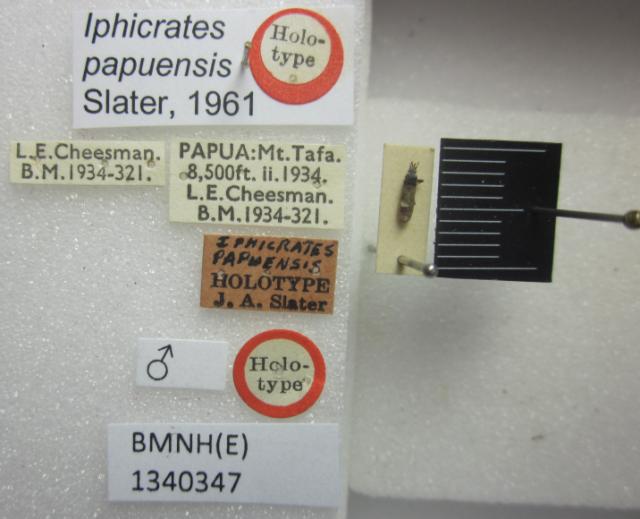Iphicrates papuensis. Holotype. (BMNH) - (CC BY-NC 4.0) Photo by Stuart Cole, reproduced with permission from the Natural History Museum, London, UK.