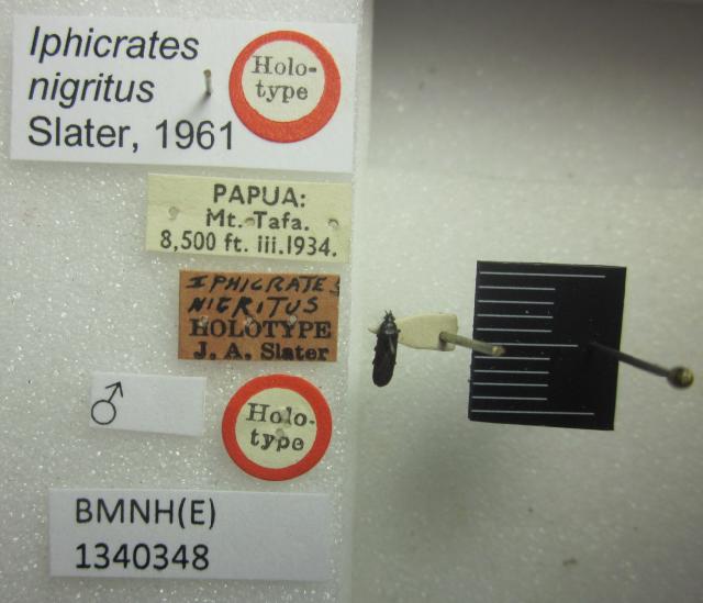 Iphicrates nigritus. Holotype. (BMNH) - (CC BY-NC 4.0) Photo by Stuart Cole, reproduced with permission from the Natural History Museum, London, UK.