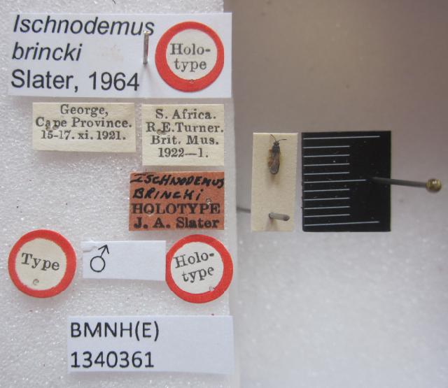Ischnodemus brincki. Holotype. (BMNH) - (CC BY-NC 4.0) Photo by Stuart Cole, reproduced with permission from the Natural History Museum, London, UK.