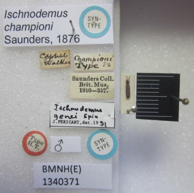 Ischnodemus championi. Syntype. (BMNH) - (CC BY-NC 4.0) Photo by Stuart Cole, reproduced with permission from the Natural History Museum, London, UK.