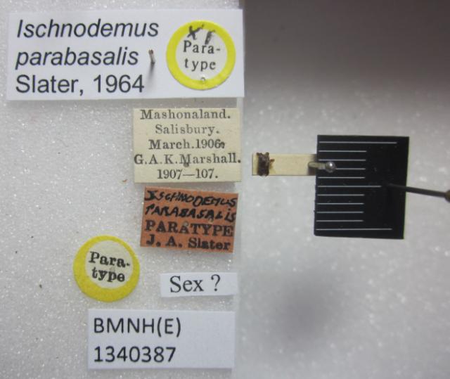Ischnodemus parabasalis. Paratype. (BMNH) - (CC BY-NC 4.0) Photo by Stuart Cole, reproduced with permission from the Natural History Museum, London, UK.